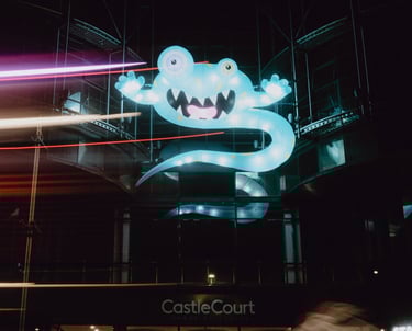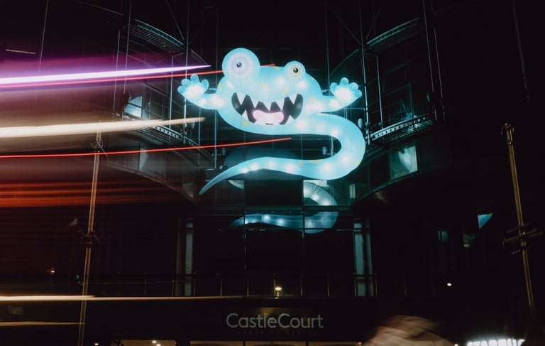 Belfast One showcased my photographs on their website, highlighting the Halloween Monsters Inflatable attractions throughout the city. These images were also utilized in various marketing materials.